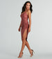 Let this mini dress draw all eyes on you! The mini dress features a sleeveless V-neckline, a cross-back strap design, a ruched side seam to accentuate your curves, and an asymmetrical mini-length hem. The dress is composed of a stretchy satin fabric that offers a form-hugging fit. Complete the look with metallic heels for your next date night.