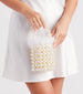 Make your next party a fabulous affair with this chic statement bucket bag! It features a faux pearl beaded design with a top marabou feather trim, a short pearl strap, a long, thin, and removable pearl shoulder strap, and an included woven satin drawstring bag with pearl accents. Style with gold hoop earrings.