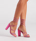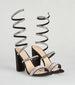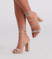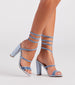 You're a total fancy gal when it comes to fashion! These trendy block heels are a total must-have for you. They feature an open almond-shaped toe, dual straps, a thin spiral strap design that wraps around the leg, and a block heel. The straps feature all-over mini rhinestone embellishments for a glamorous sparkle. Pair these heels with a little black dress.