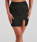 Keep it chic with this trendy faux suede mini skirt. It features a high-rise waist, flattering vertical front seams, and a slit accent. The skirt offers a form-hugging fit that enhances curves and a moderate stretch. Complete the look in a flirty top and heels for a day or night occasion.