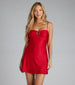 Ready to cause a commotion? Show up to date night in a flattering mini dress designed with a cutout bust and A-line silhouette that flaunts your figure.