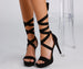 Strut in these fabulous platform stilettos featuring a square toe, lace-up ankle straps, and a faux suede exterior. Complete your look in a mini dress.