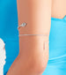 This trendy rhinestone arm cuff will give off total fierce glam vibes! It features a wrap-around design with a thin snake shape, all-over rhinestone embellishments, gemstone-embellished eyes, and a short hanging tail accent. Style with a ring set.