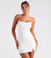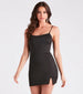 You'll be serving up style in this skort romper perfect for dressing up! It features a sleeveless scoop neckline, spaghetti straps, a slim curve-hugging silhouette, and a skirt overlay with a mini front slit accent with fitted shorts underneath. The romper is crafted from a four-way stretch and smooth knit fabric. Style with chic earrings for an evening out!