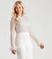 Show off flawless glamour in this sequin crop top that was made for a party! It features a crew neckline, long fitted sleeves with trendy feather trim cuffs, a cropped, fitted hem, and all-over sequin embroidery for the prettiest shine. Style with high-rise dress pants and clear heels.