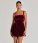 Radiate flawless glamour in this velvet skater dress with all-over tonal rhinestone embellishments for that luxe sparkle. It features a sleeveless square neckline, tank shoulder straps, a trendy V-shaped drop waist, and a short pleated skater silhouette for an adorable flair.