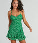 This adorable floral chiffon mini dress will bring the flirty flair to your spring parties! Designed with a dainty floral print on lightweight lined chiffon fabric. This mini-length dress features a sleeveless sweetheart neckline with a built-in padded bust, spaghetti straps that lead to an open back with a cross-back strappy design, and a corset-style bodice with a fitted high waist. The A-line silhouette has a faux wrap-front creating the cutest asymmetric ruffled hem. Complete your look with strappy sandals.