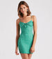 Flourish for spring in this dainty floral mini dress you'll love styling for casual plans! It features a sleeveless scoop neck with a tie-front bust, spaghetti straps, and a bodycon fit on stretchy rib knit fabric. Complete the look with new trendy sandals.