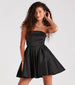 Amaze and delight in the Francie taffeta party dress ready for twirling at school dances or dressy birthdays! She features a flirty strapless neckline with a fold-over accent, a flattering A-line silhouette, and a short-length hem. The party dress is crafted from a woven taffeta fabric with a subtle sheen and has multiple tulle and a stretchy knit lining for a voluminous effect. Complete the look with a dazzling necklace and earrings set.
