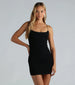 This mesh mini dress was made for Friday nights out! It features an on-trend sleeveless, square neck with pleat detail, a draped bust, sleek bungee spaghetti straps, ruched detailing, and an open back with cross straps. The mesh-lined fabric hugs your body like an hourglass and offers plenty of stretch. Complete the look in stiletto heels.