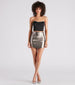 Your style is looking out of this world with this faux leather skirt featuring a sleek, high-rise waist, a bodycon silhouette, and a round mini-length hem. The metallic sheen will keep all eyes on you. Style with a corset top to complete your night out look!