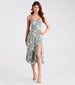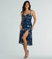 Enchanting and chic, this floral chiffon midi dress is perfect for a garden wedding. It features a sleeveless sweetheart neckline with a bust outline, adjustable spaghetti straps, a high waist seam, a smocked back panel with a zipper closure, a midi-length hem with a high front slit, and a flowy A-line silhouette. The airy chiffon fabric features a romantic blooming floral print alongside a dainty flower pattern. Style with clear block heels.