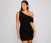Make a stunning entrance with a formal mini dress that commands attention! Georgia features a one-shoulder neckline, a short sleeve accent, and a mini-length silhouette. The dress is composed of a smooth knit fabric that offers a form hugging fit with a moderate stretch. Complete look with rhinestone heels.