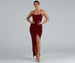 Get the scoop on the hottest new style in this sleek maxi dress! It features a sleeveless scoop neck, spaghetti straps that lead to a cross back, and a maxi length with a thigh-high slit along the asymmetrical hem. Complete the look in glitzy heels for your formal event.