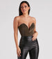 Give your closet a dose of shine by adding this strapless bodysuit to the mix! It features a plunge sweetheart neckline with a wire insert for structure, a shimmery lurex knit design, a thong bottom, and dual snap-button closures. Complete the look in dressy pants for a celebration!