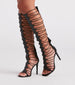 Own your fierceness and unleash your inner gladiator girlie in these stylish stiletto heels perfect for adding spice to your night! They feature a sleek square toe, a closed ankle with a back zipper closure, and a thigh-high length cutout shaft with sleek bungee cord laces. Complete the look in a saucy strapless little black dress for a club night!