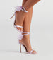 Bring the glam girl vibes to your chic outfit with these satin stiletto heels! They feature an open square-shaped toe with a thin strap, a thin adjustable ankle strap, a sheer organza bow accent, and a sleek stiletto heel. Style with rhinestone statement earrings.