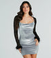 Glam up your going-out looks with this fab feather trim sequin bolero! It features long fitted sleeves with marabou feather trims, an open front, an ultra-cropped hem, and all-over sequin embroidery on the sheer knit fabric for that glitzy shine. Layer over a bodycon dress and style with rhinestone heels for a party!
