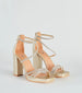 You'll be in glam mode with these gorg metallic platform heels that will level up your look! They feature an open square-shaped toe, an asymmetric strappy design with mini rhinestone embellishments, a closed back with a zipper, a platform sole, and a tall block heel. Style with a party dress.