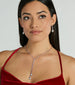 Draw them in with your gorgeous allure in this glam rhinestone lariat necklace and earrings set. It features a luxe lariat necklace with a single strand of rhinestones leading to a cascading center lariat design with two rows of rhinestones and larger teardrop rhinestone accents. The duster earrings feature a single row of rhinestones with a matching teardrop rhinestone accent. Style this jewelry set with a plunging formal dress and stiletto heels.