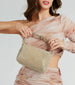 Radiate all the glam vibes with this fabulous rhinestone mesh shoulder bag! The glam shoulder bag features a rectangular-shaped design with a sparkling rhinestone mesh exterior on metallic woven material, rhinestone shoulder straps with a trendy knotted detail, and a top zipper to keep your essentials secure in the spacious woven interior. Complete your glitzy 'fit with the matching mules!