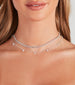 Showcase your edgy-glam style in this layered necklace! It features two layers including a chain-link and rhinestone drop on a dainty chain. Compliment your look with a chic bodysuit.