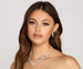 Add some glam to your look with this beautiful necklace and earrings set. The set features a V-shaped collar necklace with sparkling rhinestones with a leaf design. The matching earrings feature a leaf design with a teardrop shape. Complete the look with a satin skater dress and heels.