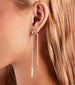Create an effortlessly dreamy look with these chic earrings featuring a sleek and minimalistic long design, dual twist strands, and bar trims with a post-back closure. Complete your dressy look in a satin cocktail dress for a rehearsal dinner or event!
