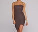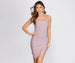 Shine even brighter in a glitter dress! Bring the glow to your date-night outfit or celebrate your birthday with lots of glitz. The dress features a sleeveless bodice with a square neckline, sleek elastic cord straps, an asymmetrical hemline to showcase curves, and a glitter knit composition that radiates from all your best angles. The dress offers a form hugging fit with slight stretch. Complete your glowing look with rhinestone hair accessories and statement mules.