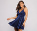 Glow on in a skater dress that brings that lots of shine to your night out! The dress features a plunging v-neckline, a double row of spaghetti straps, sleek cross straps at the back, and a flared skater dress. Complete your night out outfit with rhinestone earrings and a sleek clutch.