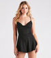 Make your eyes sparkle and everyone else's in this glitter knit romper! It features a sleeveless cowl neckline, spaghetti straps that crisscross along the open back, a fitted high waist seam, and a short flowy hem. The glitter knit fabric offers a moderate stretch. Complete the look in radiant rhinestone jewelry for a girl's night out!