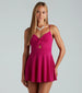 This adorable skater romper is sparkly glitter perfection! It features a sleeveless V-neckline with a twist-front design followed by a small keyhole cutout, spaghetti straps, dual high waist seams, a short skater skirt over shorts, and a fit and flare silhouette. The glitter knit fabric has a moderate stretch. Style with a rhinestone necklace and heels for a school dance!