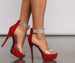 Get ready to glow with these luxe heels that make you feel like a total fashionista! The heels feature a zippered back, a rhinestone embellished ankle strap, an open almond toe with clear PVC strap over the toe, a wide platform, and a sleek stiletto heel. Complete look with an LBD and rhinestone bracelet.