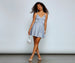 You'll look oh-so-glitzy and gorgeous in this flirty glitter knit skater dress! It features a sleeveless V-neckline, dual spaghetti straps that lead to a cross-back strap design, and a short skater skirt with a fit and flare silhouette. Style this glamorous dress with rhinestone statement earrings and embellished heels.