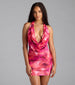 So glitzy and fab, this glitter knit mini dress features an abstract print for a head-turning vibe. The plunging cowl neckline and curve-hugging silhouette add that allure.