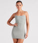 It may be dreary during the day but at night is when your glow-up happens! Bring the shine in this glitter mini dress featuring a sleeveless square neck, bungee spaghetti straps that shape the open back with lattice straps, and a bodycon silhouette on crepe knit fabric. Complete the look in sassy platform heels.
