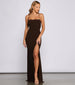Lace-up in a formal long dress that brings the wow factor to your evening! Gretchen features a sleeveless square neckline, sleek spaghetti straps, lace-up straps at the back, and a high-side slit. The dress is composed of a smooth knit fabric that offers a form-hugging fit with a moderate stretch. Complete look with rhinestone heels and a metal cuff.