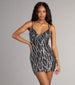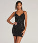A sultry bodycon mini dress features a flattering V-neckline with padded bra cups for support, adjustable spaghetti straps, and a lace-up back that turns heads. Perfect for prom or a party.