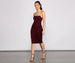 Bring the romantic vibes in this casually-chic midi dress! It features a sleeveless bodice with a square neckline, bungee spaghetti straps, a square back, ruched detailing, and a mid-length, curve-hugging silhouette. Pair this dress with strappy heels and a sleek clutch to complete your look.