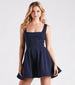 Twirl all night in the flirty Helen crepe party dress at school dances, birthdays, or banquets! She features a sleeveless square neckline, tank shoulder straps, an eye-catching lace-up back with tie closure, hidden side pockets for keeping your hands warm, and a flattering skater silhouette with a short-length bonded hem. The party dress is composed of a crepe knit fabric with a bust lining and plenty of stretch. Complete the look in this short skater dress with strappy block heels.