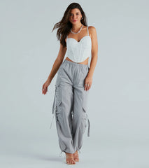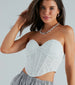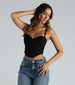 Everyone will be totally smitten with you in this lace bustier! The top is designed with a flattering sweetheart neckline, detachable and adjustable spaghetti straps, a built-in padded underwire bust, flexible boning inserts, a cropped hem, and multiple back hook and eye closures on lace-lined fabric. Complete the look in high-rise jeans for a brunch or day party!