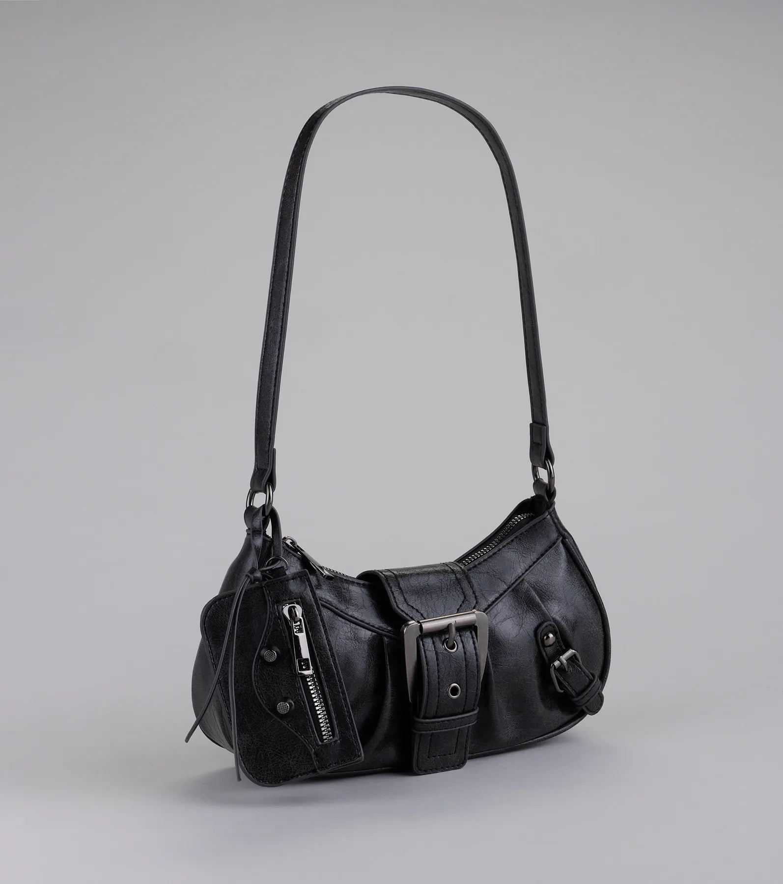 This trendy shoulder bag is designed with edgy buckle straps and a spacious interior for keeping your must-haves in. Perfect for everyday styling and occasions!