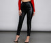 Play it cool in these fab leggings that take elevate your basic loungewear! The leggings feature an elastic high-rise waist, vertical seams on each leg, and a skinny leg fit with a cropped tapered hem. The leggings are composed of a lined faux leather fabric that offers a form hugging fit with a moderate stretch. Complete look with a crop top and chunky sneakers.