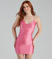 You're in for a hot night out in this sultry mini dress! It features a cowl neck and spaghetti straps that lead to an open-back with strappy detailing, a bodycon fit, and a short hem. The sleek knit fabric offers a moderate stretch. Complete the look in lace-up heels.