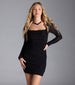 Be glamorous and irresistible in this mini dress! This bodycon dress features long sheer ruched fitted sleeves, a square neckline, and side ruched seams that accentuate your curves on the rhinestone embellished lined mesh fabric that sparkles with every move. Complete the look in platform heels for a night out!