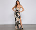 Dazzle with an island-inspired look in this maxi dress that brings those vacay vibes! The dress features a sleeveless V-neckline, spaghetti straps, a tropical floral print, a high side slit, and a maxi length silhouette. Complete look with wedges and a floppy hat.