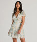 Enter a sweet oasis looking cute in this tropical woven skater dress ready for some serious island time! Featuring adorable puff short sleeves, a V-neckline, a back cutout with trim detail, a stretchy smocked back, and a tiered fit-and-flare short-length silhouette. The airy sheer woven fabric features a tropical floral print pattern and includes a knit lining. Complete the look in strappy wedges.