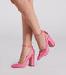 Show off your it-girl status in these trendy Y2K-inspired block heel pumps! They feature a closed-pointed toe, side cutouts at the heel, a closed back, a thin adjustable ankle strap, and a sturdy block heel. Style these patent faux leather pumps with a bodycon mini dress.