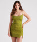 Show off a stylish shine in this gorgeous and glitzy Jasmine glitter mini dress boasting a lace-up back that turns heads and a ruched bodycon silhouette that flaunts your figure!