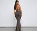 Make a gorgeous and glitzy entrance at your next formal soiree in the stunning Jessica glitter knit mermaid dress. She features a sleeveless square neckline, bungee spaghetti straps that lead to an open back with a lace-up strappy design, a high waist seam, and a floor-length fitted mermaid silhouette. Style this dress with sparkling rhinestone earrings to add all the more glamour to your look.